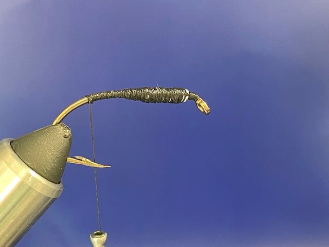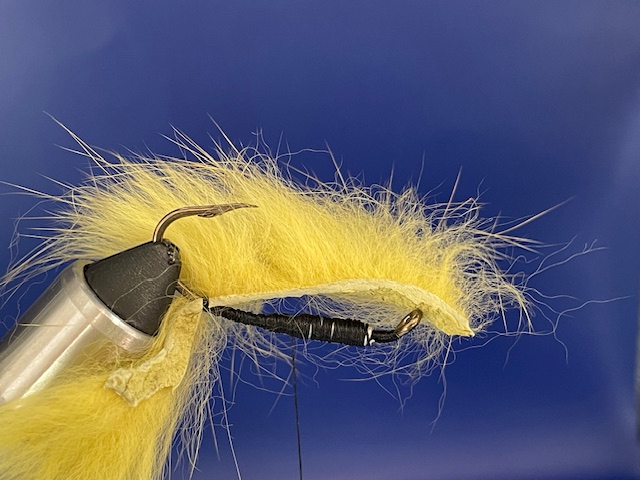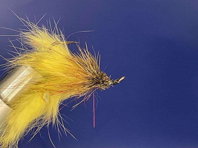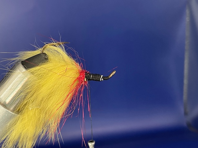 I added 9 wraps of heavy wire to the hook before covering it with the thread. Make sure and leave enough space in front of the eye. Tie a couple of half hitches at the end so that the thread will stay put when you take the hook out of the vise for the next step.Cut about a four inch strip of rabbit. Take the hook out of the vise and stab it through the rabbit strip. Always stab starting with the leather side first and coming out the fur side. Put the hook back in the vise, but inverted. Tie down the rabbit strip and advance the thread just a bit over half way up the hook. If you are using a longer shanked hook, you may have to advance the thread to more like two thirds of the way.I took the rabbit strip and palmered it forward just like you would a hackle on a wolly bugger. I tied off the rabbit and added a hot spot of red Ice Dub. You can see that I left quite a few long wispy pieces.Tie in a clump of elk hair on each side of the hook and flair the hair to imitate the prominent pectoral fins of the real sculpin. This is a view from the bottom of the fly. Note that the elk hair doesn’t spin around the bottom of the hook. You want the fly to be flat on the bottom.This is the side view. You can see that I didn’t clip the butt ends too closely to the hook. This is to give the glue more material to latch on to when we add the head.I added a couple drops of super glue and stuck the head on. After it dried a bit I went back and tied the thread back on in front of the head and whip finished another knot. Then I put another drop of glue on top of that to make sure the head can’t come off. The stick on eyes came with the heads. I wish they were a bit bigger and next time I will use something different. Good luck, and have fun!