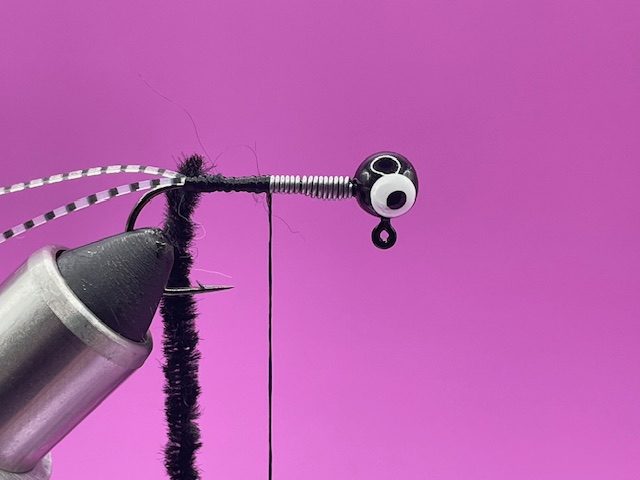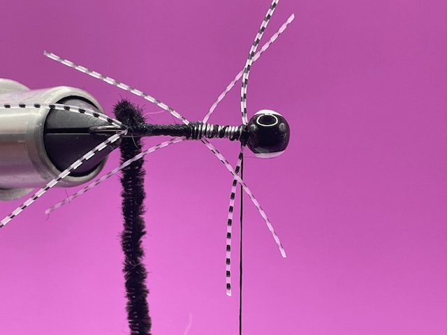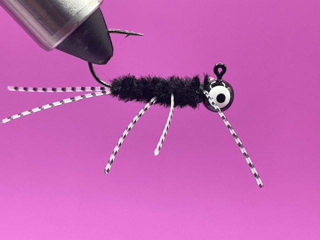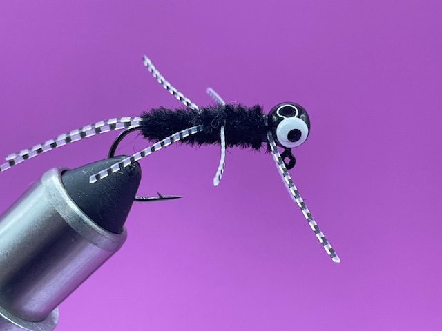 Mr. Pat Bennet came up with a simple and effective pattern to imitate any of the larger stonefly nymphs, but he wasn’t the first to combine chenille and rubberlegs to imitate a stonefly. Al Troth came up with the Yuk Bug in the mid-1970’s. Before that, sometime in the 1960’s some innovative Montana tyer came up the Bitch Creek nymph, which might be the first popularized nymph that incorporated rubberlegs. All of these flies work. What Pat Bennet figured out is that all you need is the chenille and the rubberlegs. His pattern has fewer materials and is easier to tie than any of the earlier rubberleg nymphs. With the wide variety of both chenille and rubberlegs out there, the variations are nearly endless. My variation uses a standard ball head jig. It sinks very quickly and rides with the hook up which helps a bit when bouncing off the bottom. It’s an inexpensive and quick fly that is supremely effective.